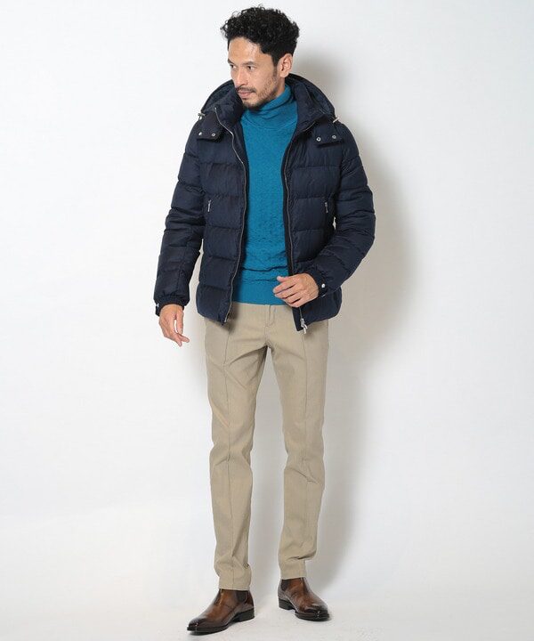 スリムなシルエットが特徴のタトラスのダウン。体型が気になる方でも着膨れせず、スタイリッシュに見せられるのが魅力です。オン・オフどちらにも対応できる万能ダウンは、60代メンズに特に人気の一着です。